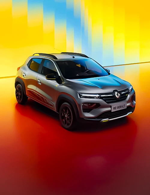 Compacto e atraente, o Renault Kwid se destaca por seu design de SUV: altura do solo de 185 mm, revestido com placas de proteção de carroceria e dianteiras. Esse SUV chama atenção com sua nova cor cinza cassiopée, adesivos laterais exclusivos e os detalhe
