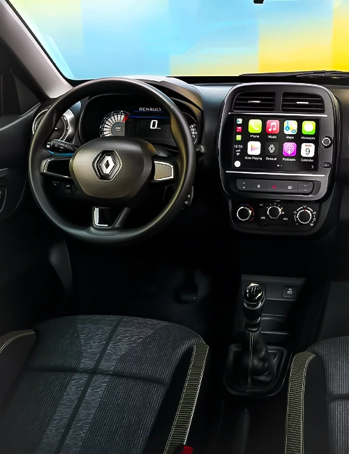 o motor do Renault Kwid combina desempenho, dirigibilidade e economia com consumo de 14,6 km/L*. O sistema Stop&Start desliga o motor quando você para e dá a partida automaticamente quando acelera, proporcionando consumo otimizado de combustível.